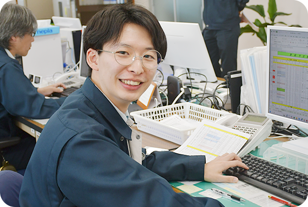 お客様の納期の遵守を目的として生産計画の組み立てを行っています。また、効率的な生産を行うため製造工程の各担当の方とコミュニケーションを取り、臨機応変に計画を見直しています。他にもお客様の安心のために、定期的に在庫と生産状況をまとめた計画表を作成し進捗を報告しています。
